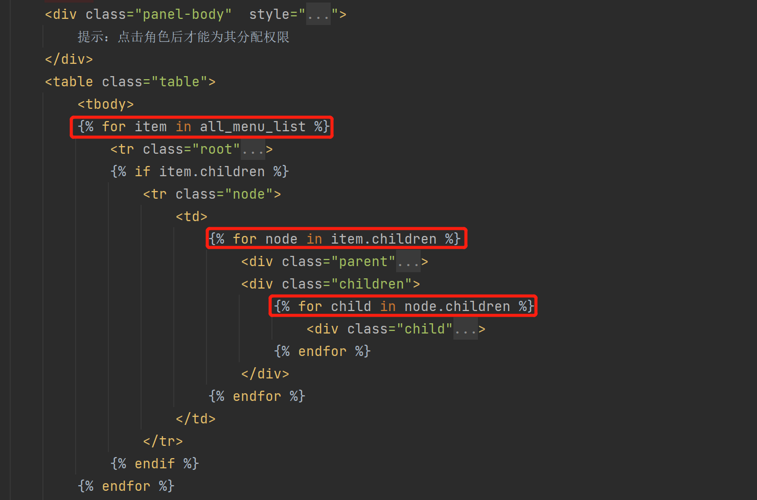 三层循环来做出上图权限分配的三级效果