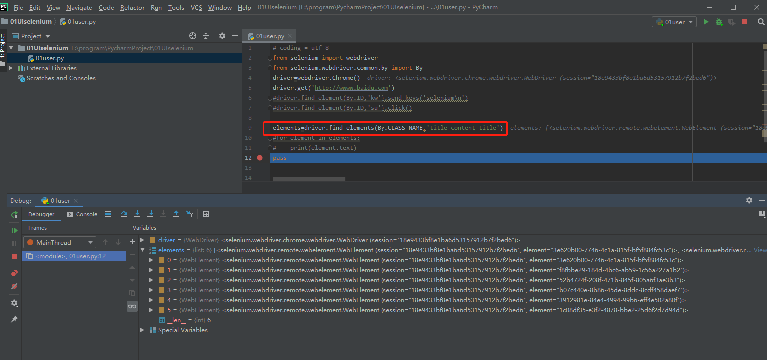里面都是class属性值为title-content-title 的元素对应的webelement对象