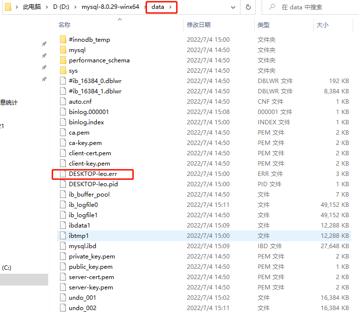 输入上述命令,按回车,会发现文件夹下会多出一个新的文件夹data,里面err后缀的文件保存了数据库密码