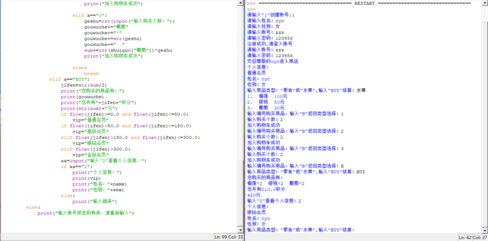 a=input("输入商品类型:“零食”或“水果”,输入”BUY“结算:")