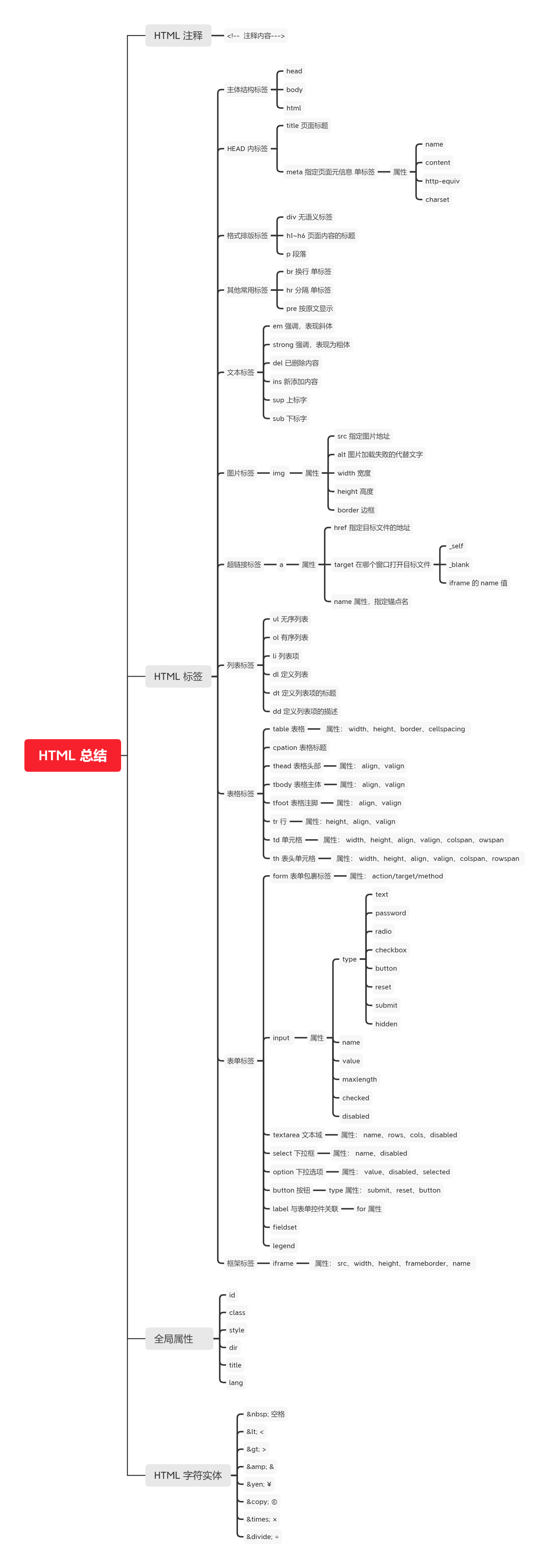 标签名 | 签名含义 | 常用属性 | 单双标签 |