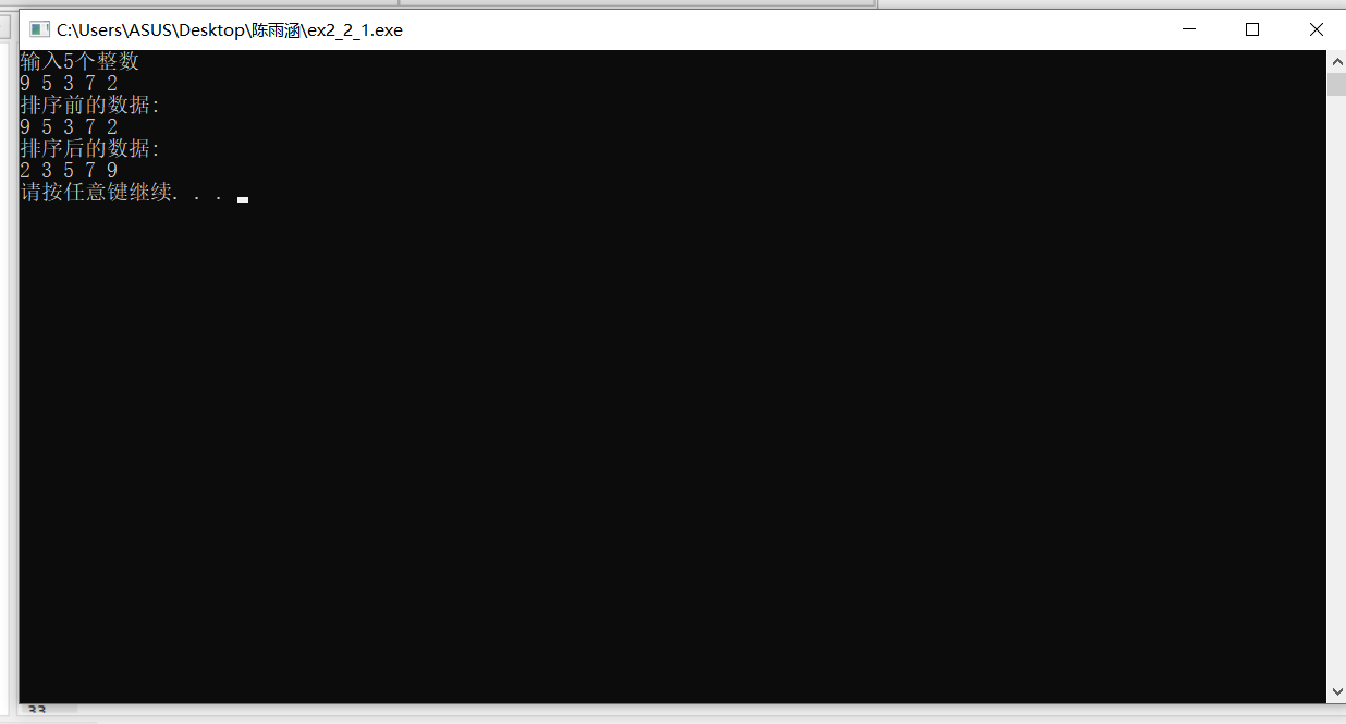 // 示例: 使用选择法排序对一组整数由小到大排序