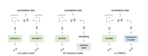 | Moco (InsDis改进) | 队列取代memery bank,动量编码器 | ![]() |