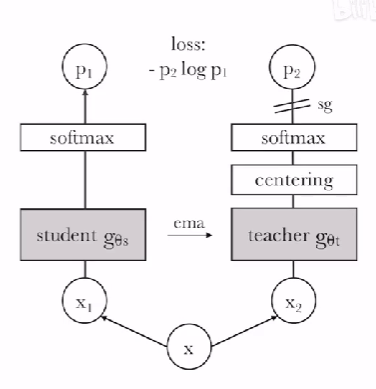 | DiNo | 蒸馏~, centering(算batch 均值) | ![]() |