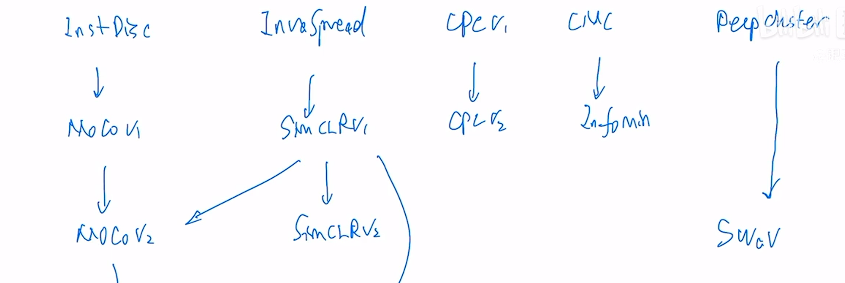 | InvSpread (simCLR前身) | 个体判别 | 端到端、负样本和正样本来自同一个mini batch,做增强 | ![]() |