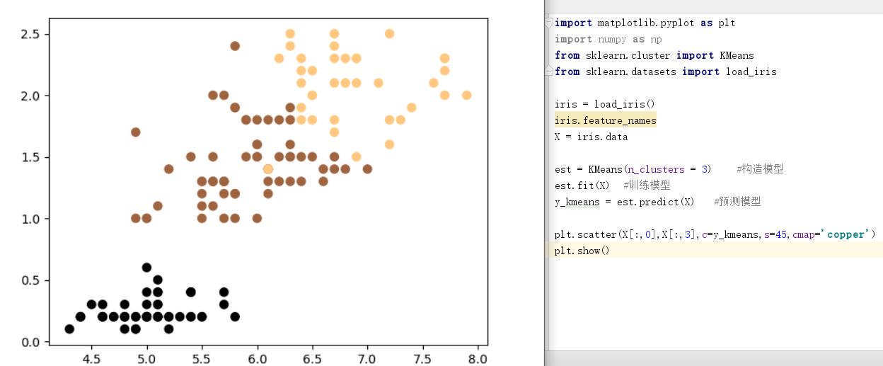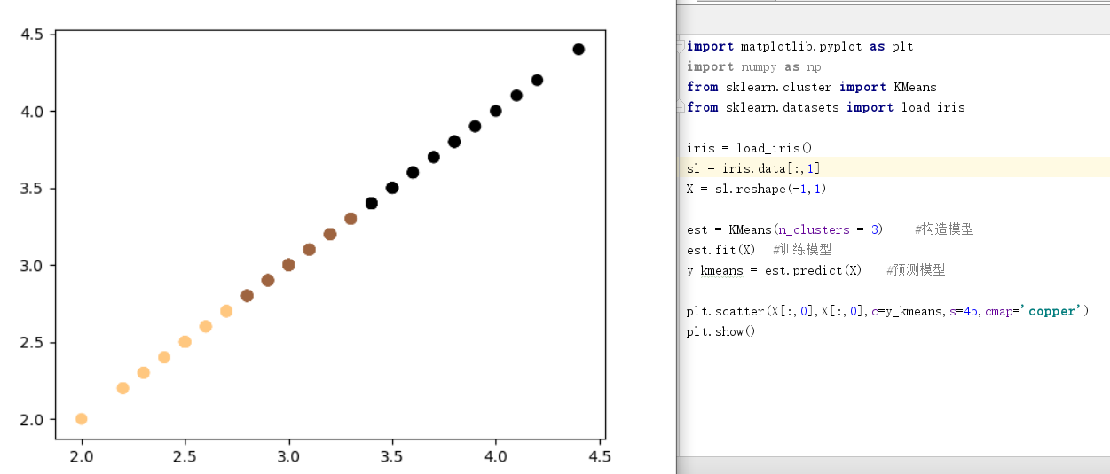 3). 用sklearn.cluster.KMeans,鸢尾花花瓣长度数据做聚类,并用散点图显示.
