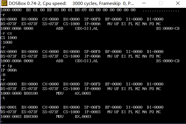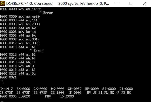 3.第一次在电脑上进行了 add mov jmp等操作,有点困难