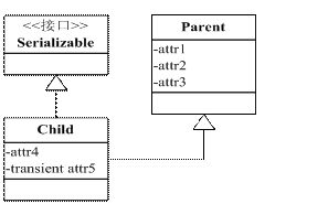 上图中可以看出,attr1、attr2、attr3、attr5 都不会被序列化,放在父类中的好处在于当有另外一个 Child 类时,attr1、attr2、attr3 依然不会被序列化,不用重复抒写 transient,代码简洁。