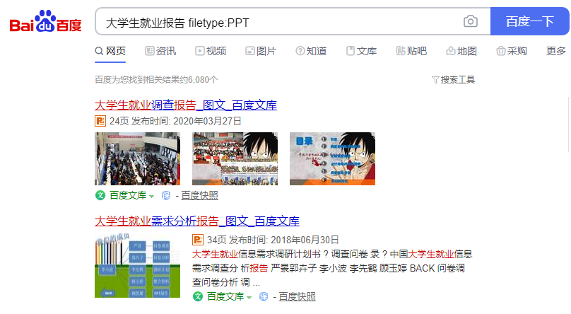 2.搜索某行业ppt,例:大学生就业报告 filetype:PPT(关键词+空格+filetype+英文冒号+文件类型)