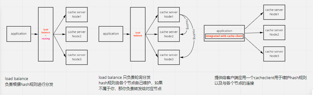 其实后来仔细想想,作为一个cache,性能要求太高了,应该避免多次转发,因此我认为第三种方案时最好的。 客户端直连cache节点,这也让我想起了我之前公司使用分布式内存库 ,用的是”胖客户端“