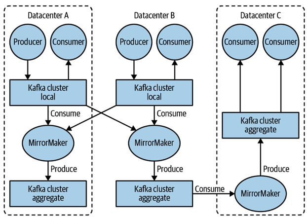 有时会使用不同的cluster来隔离不同域的数据,但是不同域又有消息交互使用,那么就可以使用mirrormaker