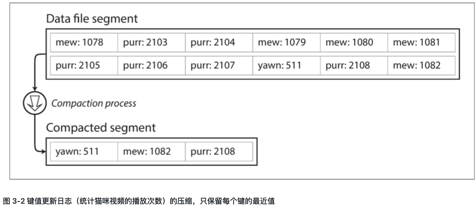 这时候我们可以,将日志追加写到一定大小的段(segment),当segment到达一定大小的时候,关闭这个segment,打开一个新文件,然后对已经关闭的segment进行压缩.