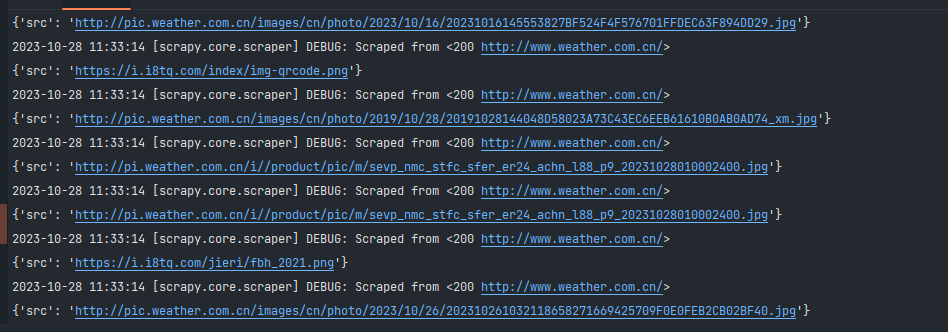 指定一个网站,爬取这个网站中的所有的所有图片,例如:中国气象网(http://www.weather.com.cn)。使用scrapy框架分别实现单线程和多线程的方式爬取。