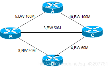 下面来一个拓扑图,和SPF的拓扑一样,不过加上了TE的预留带宽。