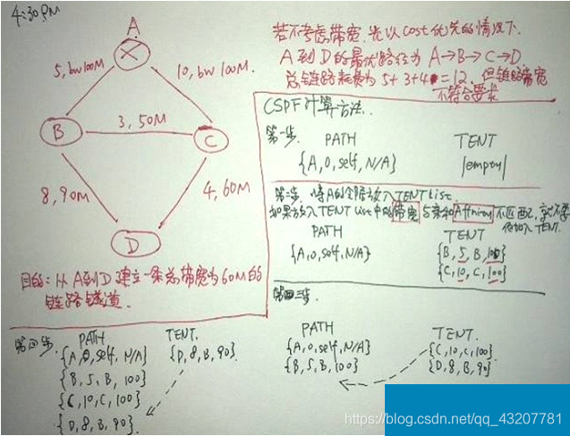 在CSPF中,和SPF类似,也有PATH list表,和TENT列表,不过这里还需要加上可用带宽。