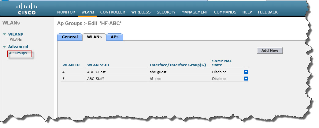WLANs --> NEW,新增SSID。建立后进入编辑界面,