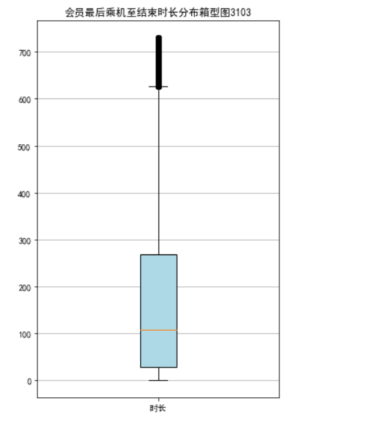 plt.title('会员最后乘机至结束时长分布箱型图3103')