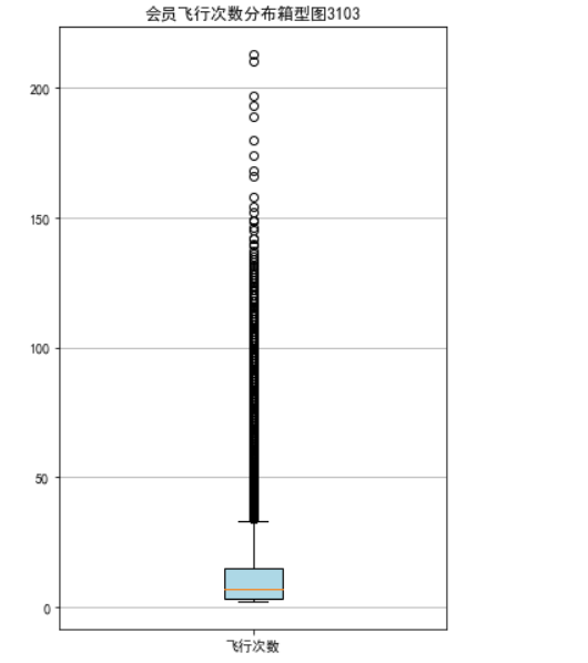 plt.boxplot(fc,patch_artist=True,labels=['飞行次数'],boxprops={'facecolor':'lightblue'})