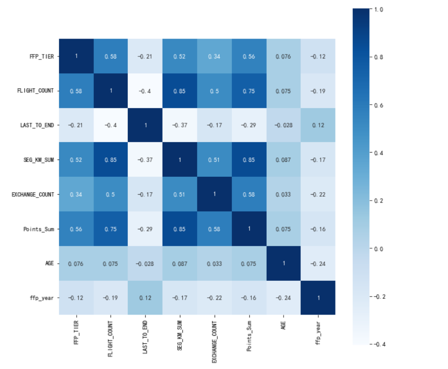 data_corr=data[['FFP_TIER','FLIGHT_COUNT','LAST_TO_END','SEG_KM_SUM','EXCHANGE_COUNT','Points_Sum']]