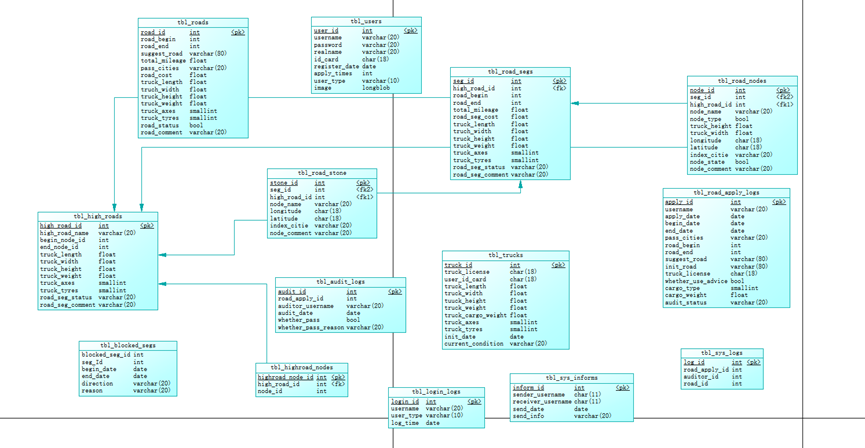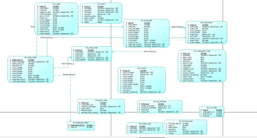 高速公路表:存放着一些高速公路,路线的申报,需要司机填写高速公路的名称。