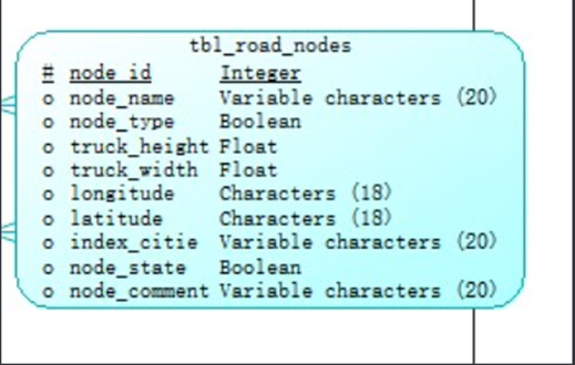 收费站-交叉口结点表:高速公路中有意义的结点,这些结点会收取费用,限制车辆的属性,该结点表来存放这些结点。