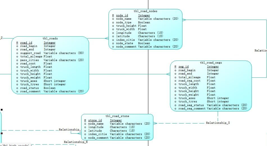 路段表:这个表用来存放一小节的路段,用于设置不同的路段状态,然后会影响到整个路线,同时整个路线的设置也与路段的选取相关。