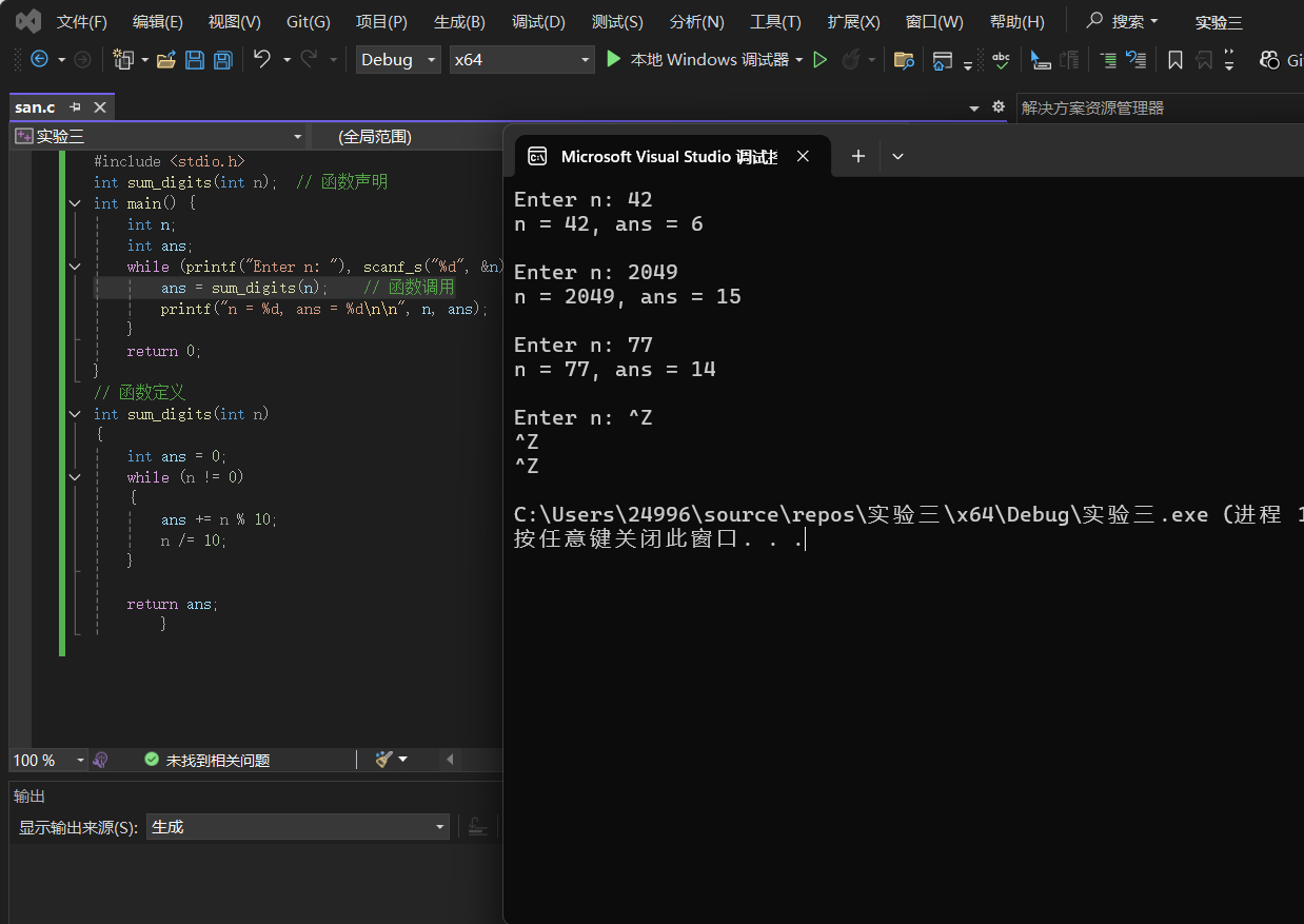 函数sum_digits的功能是计算整数n的各位数字之和。例如,输入42时,计算4 + 2 = 6;输入2049时,计算2 + 0 + 4 + 9 = 15。