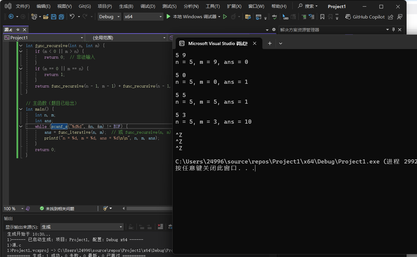 ans = func_iterative(n, m); // 或 func_recursive(n, m)