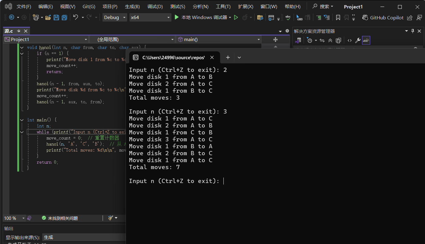 hanoi(n, 'A', 'C', 'B'); // 从 A 移动到 C,借助 B