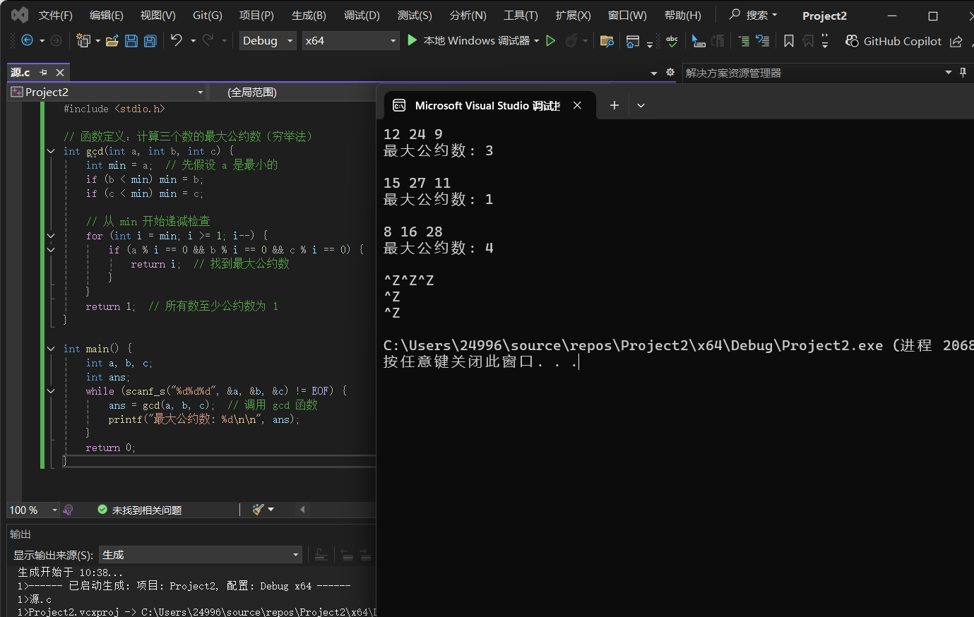 ans = gcd(a, b, c); // 调用 gcd 函数