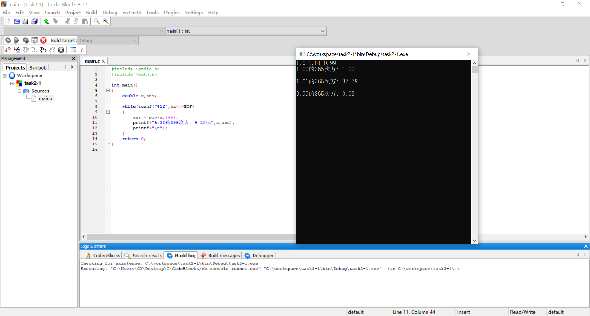 printf("%.2f的365次方: %.2f\n",x,ans);