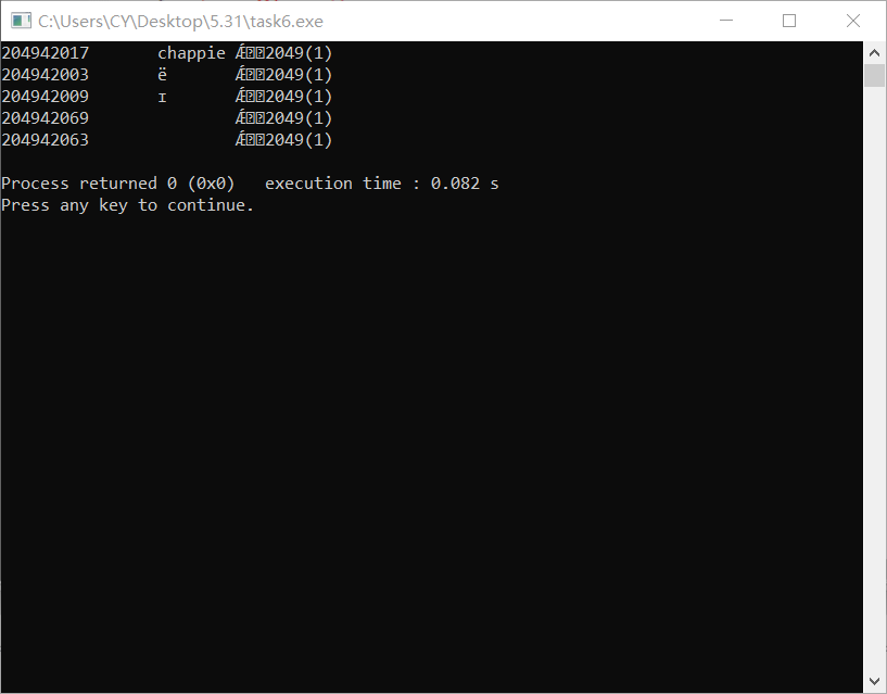 #include<stdio.h> #include<time.h> #include<string.h> #define N 5 typedef struct { long int id; char name[10]; char clname[30]; }STU; void pick(STU s[],int n); void input(STU s[], int n); void output(STU *s, int n); int main() { int i,k; STU stu[80],lucky[N]; input(stu,80); srand(time(0)); k=rand()%(80)+1; for(i=0;i<N;i++) { lucky[i]=stu[k]; k=rand()%(80)+1; } output(lucky,N); } void input(STU s[], int n) { int i; FILE *fin; fin = fopen("list.txt", "r"); if (fin == NULL) { printf("fail to open list.txt\n"); return 1; } for (i = 0; i < n; i++) fscanf(fin, "%ld %s %s", &s[i].id, s[i].name,s[i].clname); fclose(fin); } void output(STU s[], int n) { int i; FILE *fout; fout = fopen("lucky.txt", "w"); for (i=0;i<n;i++) printf("%ld\t%s\t%s\n", s[i].id, s[i].name,s[i].clname); if (fout == NULL) { printf("fail to create lucky.txt\n"); return 1; } for (i = 0; i < n; i++) fprintf(fout, "%ld\t%s\t%s\n", s[i].id, s[i].name,s[i].clname); fclose(fout); }