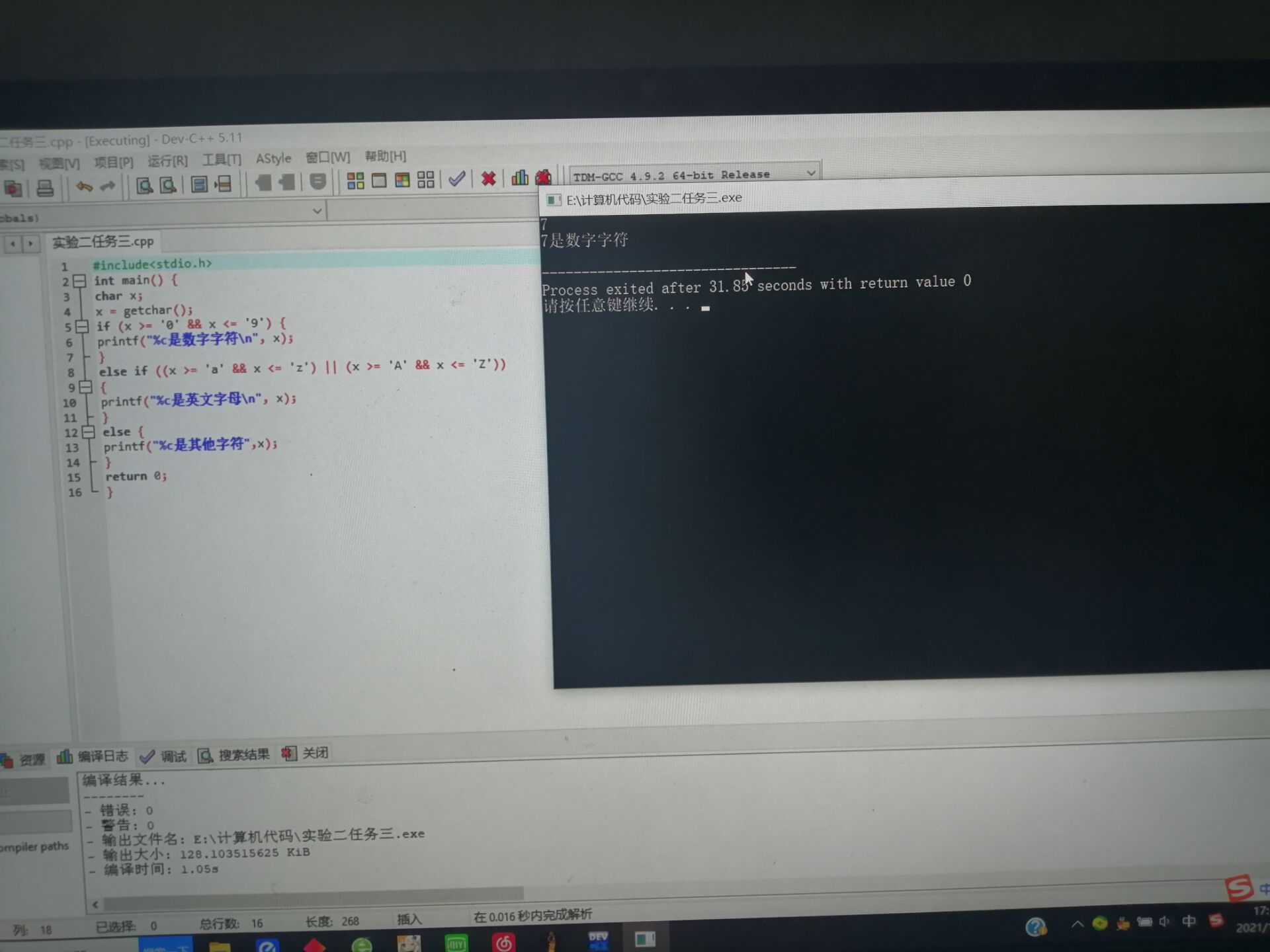 #include<stdio.h> int main() { char x; x = getchar(); if (x >= '0' && x <= '9') { printf("%c是数字字符\n", x); } else if ((x >= 'a' && x <= 'z') || (x >= 'A' && x <= 'Z')) { printf("%c是英文字母\n", x); } else { printf("%c是其他字符",x); } return 0; }