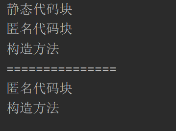 System.out.println("匿名代码块");//匿名代码块