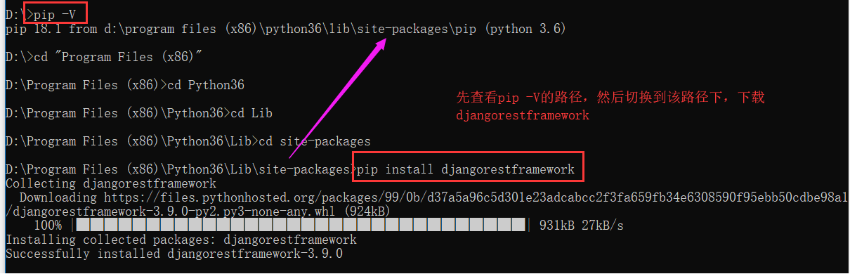 首先要保证 pip 存在,切换到,它的目录下,执行下载命令:
