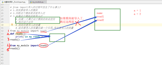 from my_module import read1 #文件中会开辟一个read1指向 模块中的read1