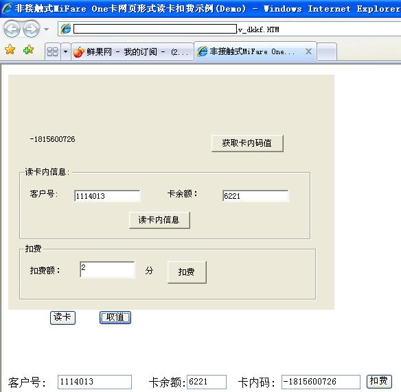 非接触式MiFare One卡网页形式读卡扣费示例(Demo)