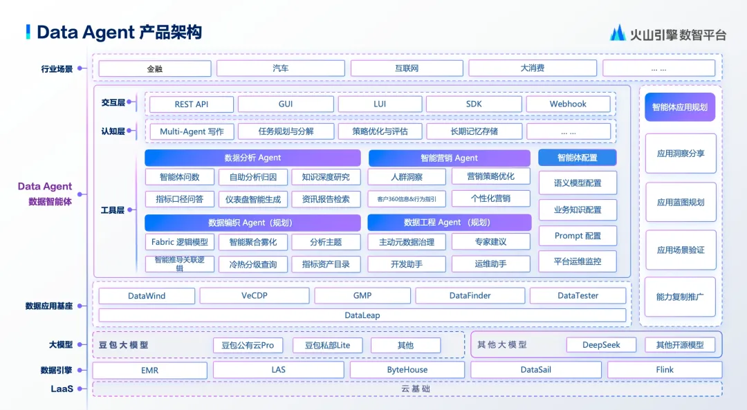 作为脱胎于字节跳动的数据应用AI,火山引擎Data Agent拥有字节跳动内部数据实践的深厚积累和先进的大模型技术;同时,它对企业数据应用有深入理解,能将通用AI能力转化为可落地的企业级解决方案。