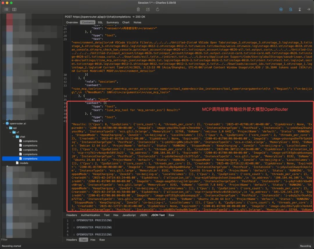 案例分析:使用三方大模型,会将 MCP Server 的返回信息传输给三方大模型,造成企业信息泄露。
