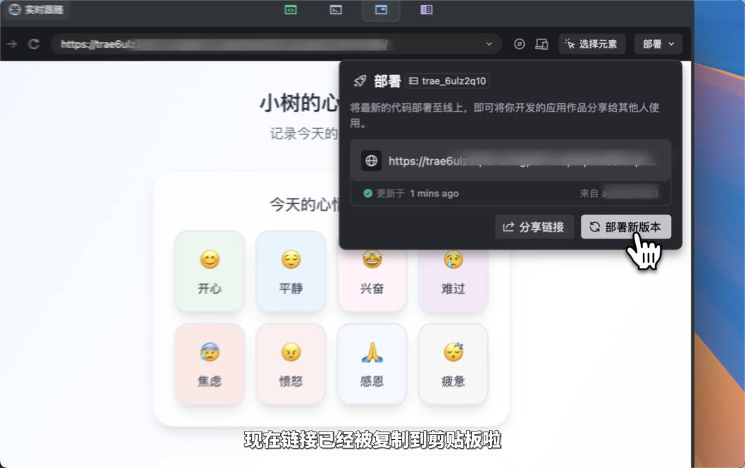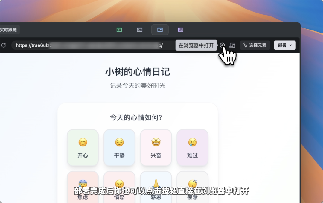 部署完成后,点击下方按钮,就能在浏览器中打开,也可以随时分享给朋友们体验。
