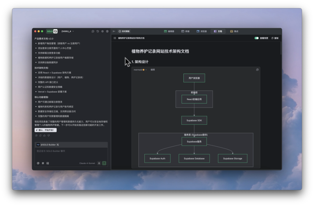 SOLO 新增后端生成能力、支持 Supabase,新增任务列表、技术架构文档
