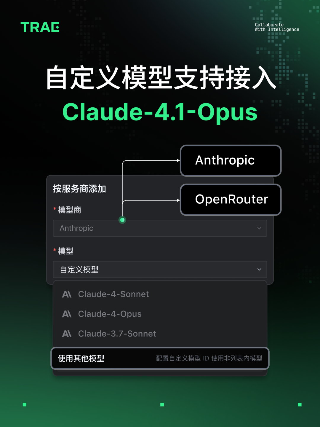 TRAE 自定义模型支持接入 Claude-4.1-Opus