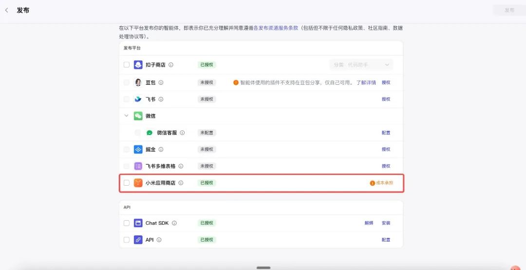 扣子新增智能体发布渠道,一键直达小米应用商店!
