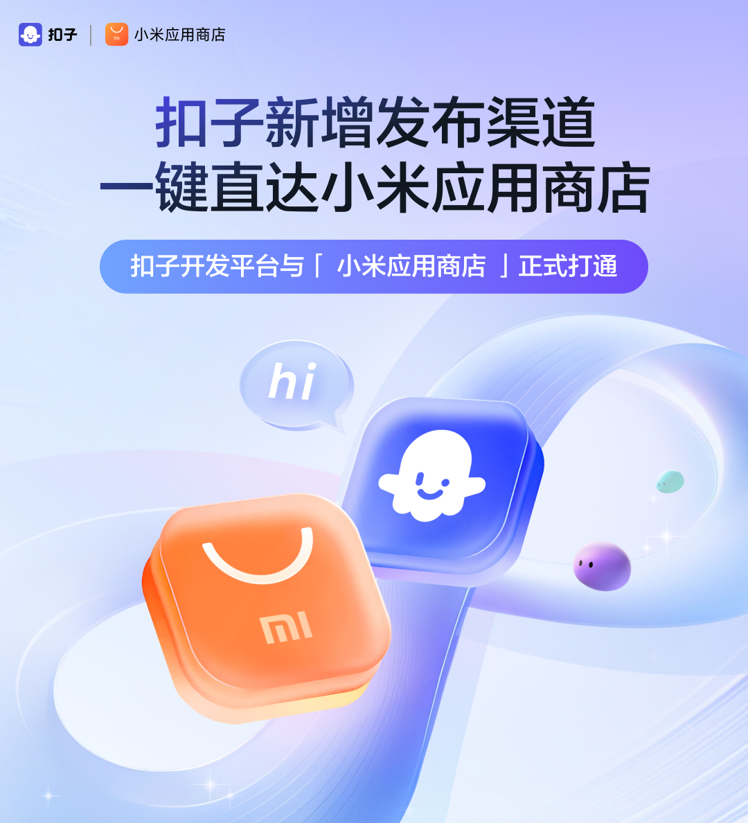 8月1日起,扣子开发平台与小米应用商店正式打通,新增发布渠道——能够实现将智能体一键发布至小米应用商店,加速智能创意的落地与传播。