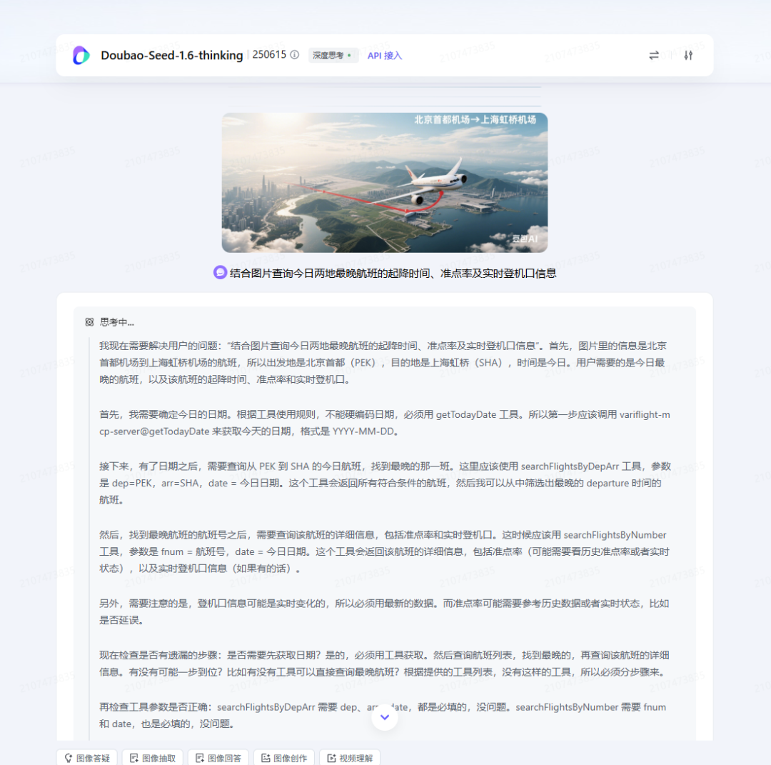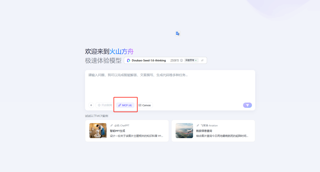 我们可以在火山方舟极速体验模型与MCP结合的效果: