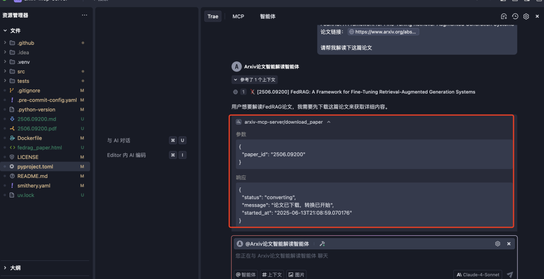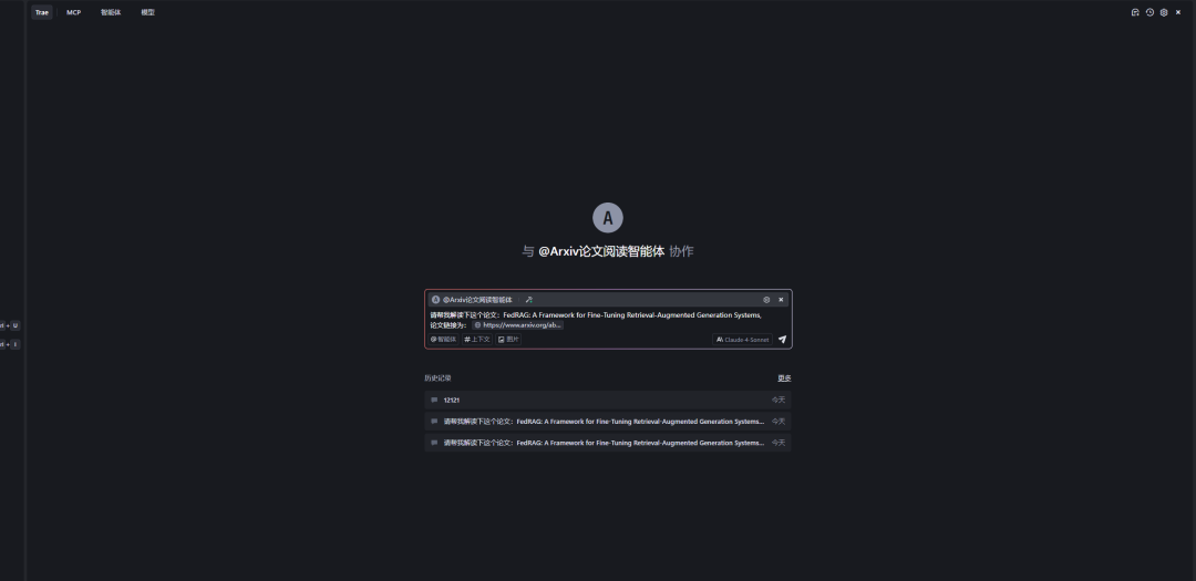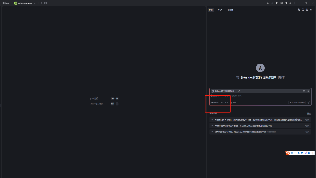 下面我们通过Trae编辑器来实现论文阅读MCP集成以及智能体构建