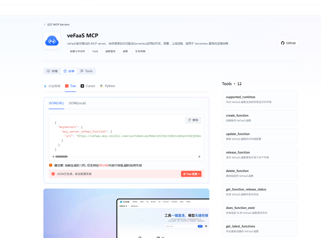 这里提一下veFaaS官方推出的 MCP server,自然语言的方式驱动Serverless应用的开发、部署、上线流程,适用于 Serverless 服务的运维排障