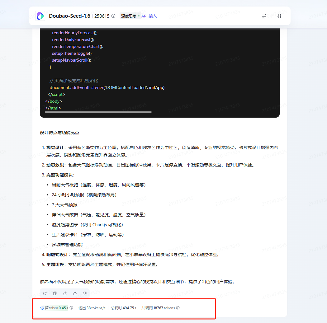 doubao-seed-1.6:能力多面手, 同时支持thinking/non-thinking/自适应思考三种模式 。non-thinking对比上一代模型在推理、数学、代码、专业知识等方面,有全面的提升。自适应思考,模型可以根据prompt难度自动决定是否思考,在效果接近thinking模式情况下,大幅减少tokens开销。此外,该模型还针对 前端编程能力做了加强 。