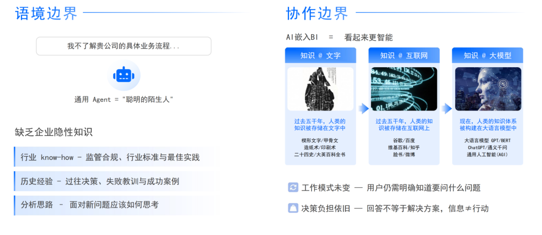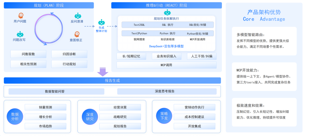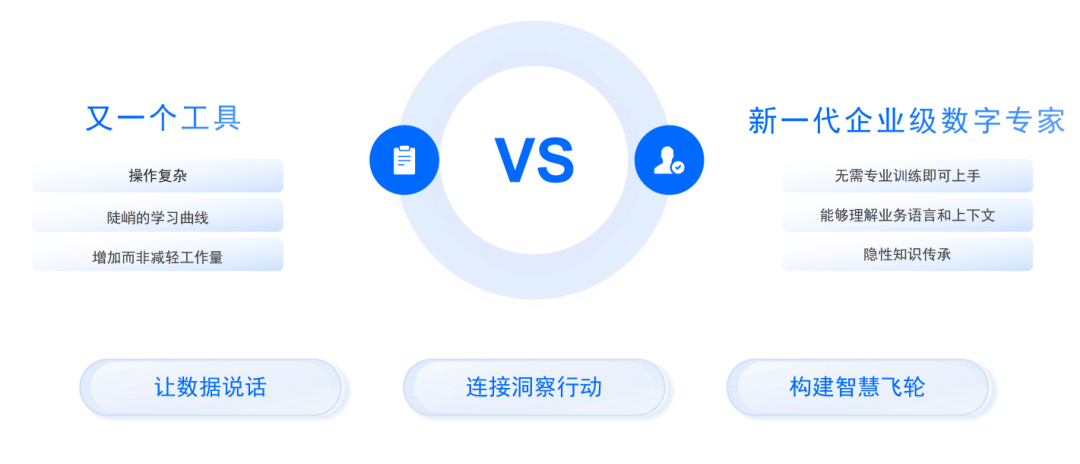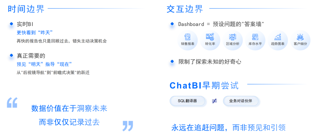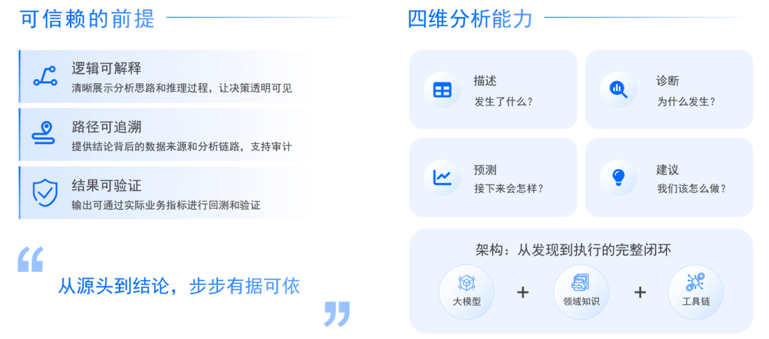 它打破了传统BI的结构性局限(如预设报表、缺乏深度洞察)和AI的黑盒困境(如“幻觉”、难以解释),实现了从量变到质变的飞跃。