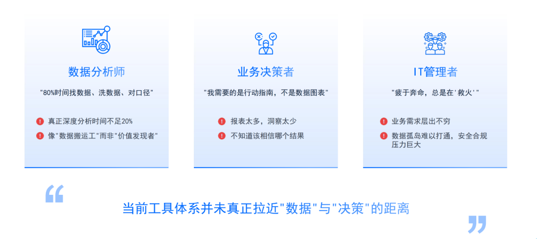 尽管工具形态不断演进,但数据分析流程中各角色的职责依旧泾渭分明: